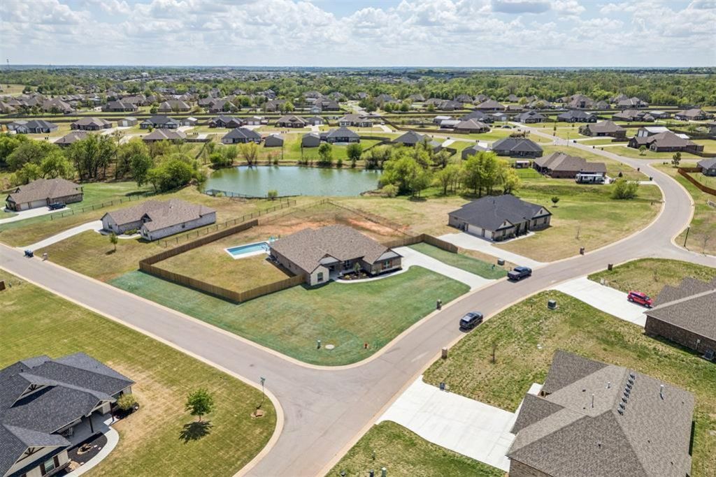 Discover the perfect blend of luxury, comfort, and functionality in this stunning 2,851 sq ft, 5-bedroom, 3.5-bathroom home nestled on an expansive 0.896-acre lot with a gorgeous saltwater gunite pool, extended patio, with serene water views that make every day feel like a vacation! Inside, the heart of the home has a spacious dream kitchen featuring floor-to-ceiling cabinetry, a generous center island, large walk-in pantry, SS appliances, and a gas range - all flowing seamlessly into an oversized dining area perfect for hosting family gatherings and entertaining guests. The thoughtful floor plan includes 5 spacious bedrooms, with walk-in closets in 4 of the 5 rooms. The primary suite is a true sanctuary, featuring double sinks, a private water closet, separate tub and shower, and a large walk-in closet that conveniently connects directly to the laundry room . A private mother-in-law suite adds flexibility for multigenerational living, guests, or a private home office setup. An in-ground storm shelter in the 3 car-garage gives your family peace of mind. The icing on the cake? This neighborhood is outbuilding friendly! This is more than a home - it's a lifestyle. Properties like this don't come along often. Schedule your private showing today!