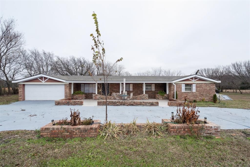 MLS Description Beautifully rebuilt in 2025, this 4-bedroom, 1.5-bath home offers approximately 1,871 sq ft of living space on a 1-acre lot. Located on a paved road just 6 miles from Okemah and 20 miles south of Bristow, the property combines modern updates with country charm.Nearly every element has been replaced-new lumber framing, roof, walls, ceilings, floors, electrical, plumbing, drywall, heating, and central air-while preserving the original brick exterior. Termite treatment was completed in 2024, with all walls and crawlspace treated for added protection.The home features 11 rooms across an estimated 76' x 30' footprint, a 2-car carport, paved horseshoe drive, and striking black iron fencing with decorative gates. A spacious 3-bay detached garage (built in 2024) and a huge front patio, 8 ft x 38 ft, provide ample storage and outdoor living.The backyard is perfect for entertaining and homesteading, with garden space, apple trees, a large picnic shelter, back porch, and a versatile 12' x 8' shed ideal for a chicken house. Utilities include electrical, LP gas, and rural water. With fully insulated walls, the home remains quiet and energy-efficient, offering privacy, security, and plenty of parking.This property is move-in ready with abundant storage, a massive shop, and inviting spaces to gather with family and friends.