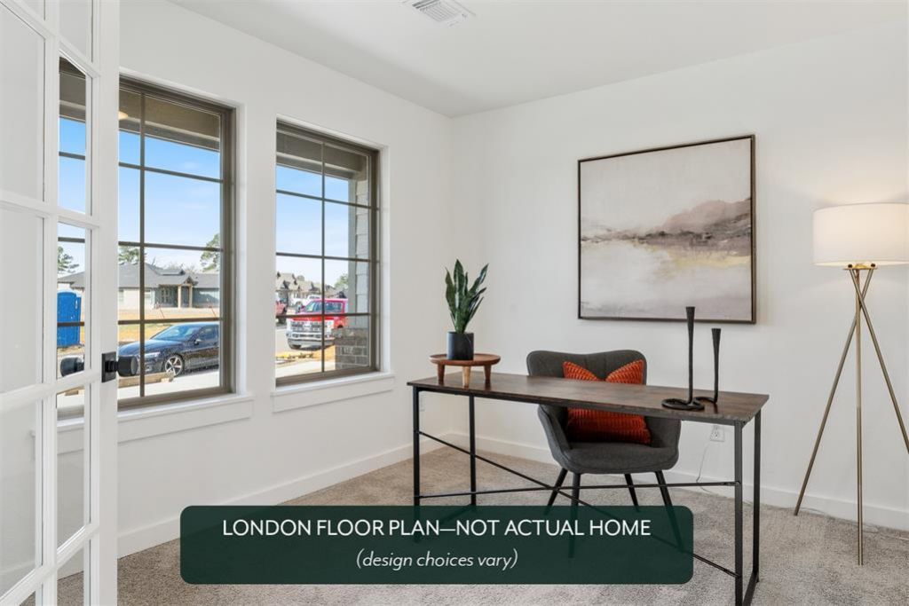 Expansive Living | Double-Stacked Kitchen Cabinets, Fireplace & Outdoor SpaceThe London floor plan offers a refined sense of space with a layout designed for both hosting and everyday comfort. An open living, dining, and kitchen area anchors the home, highlighted by tall ceilings and a cozy gas fireplace that creates a welcoming focal point. The kitchen stands out with quartz countertops, a large island, custom double-stacked cabinetry, and a gas range-bringing together thoughtful design and elevated functionality. The study is located at the front of the home for added flexibility and the main living areas feature durable hard surface flooring.The primary suite is set apart for privacy, featuring a spacious walk-in closet, with access to the laundry room, and the primary bath showcases a frameless tiled shower, soaking tub, quartz countertops, and modern fixtures. Secondary bedrooms are well positioned at the rear of the home, and the secondary bath is impressive with its included dual sinks to help keep mornings smooth while rushing to get out the door. Outside, the covered patio provides an easy extension of your living space, ideal for relaxed evenings or weekend gatherings.Located in Bison Creek, this thoughtfully planned community combines scenic surroundings with convenient access to shopping, dining, and commuter routes-With well-lit sidewalks for evening strolls or a quick jog through the community, plenty of open green space with a pond, and a large clubhouse with a community pool, it will give residents the lifestyle they desire.Included features:*One-year builder warranty*Two-year systems warranty*10-year structural warranty*Certified energy advantage guarantee for heating and cooling costs*Fully landscaped front & backyard*Fully fenced backyard*Full guttering
