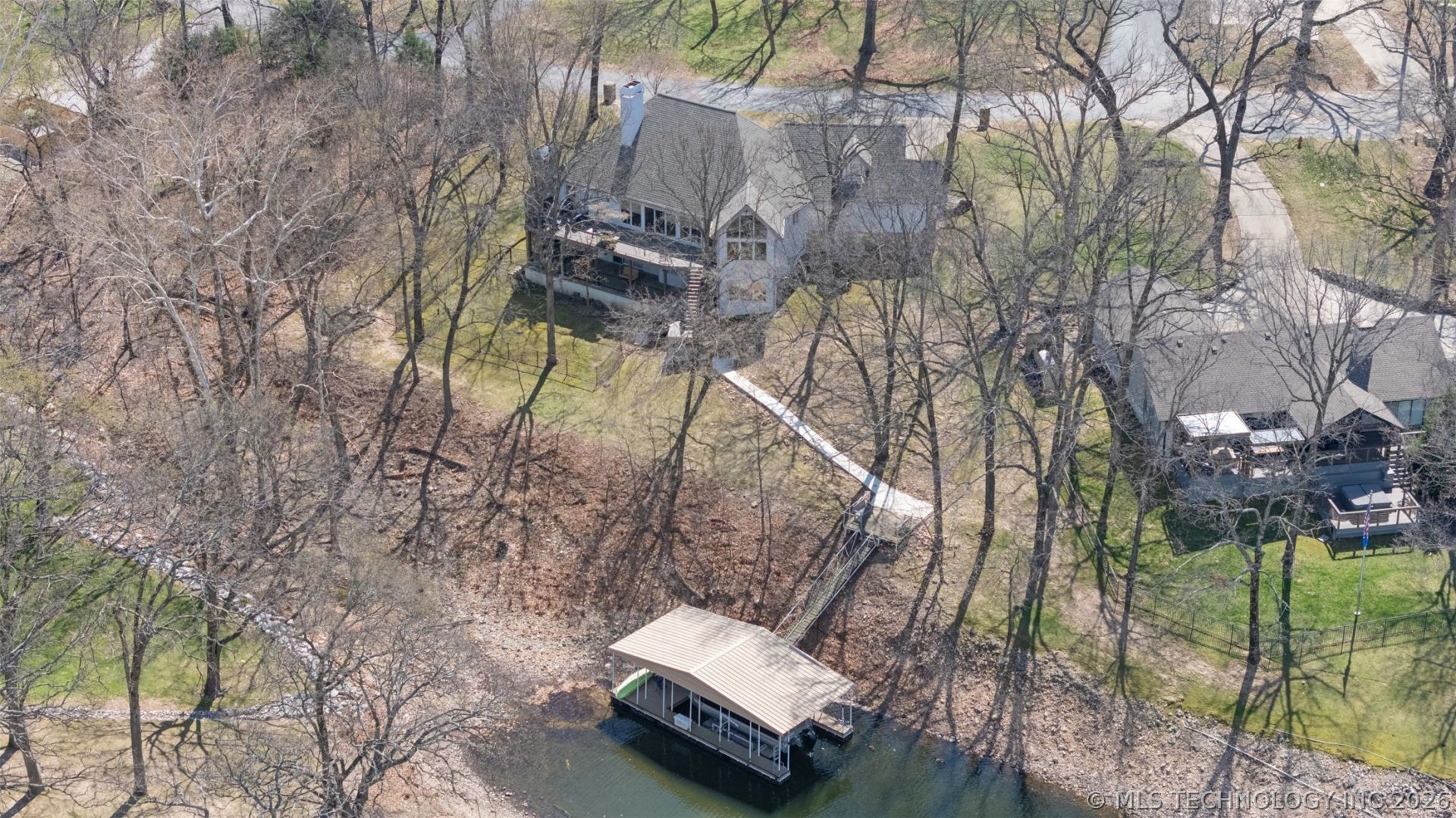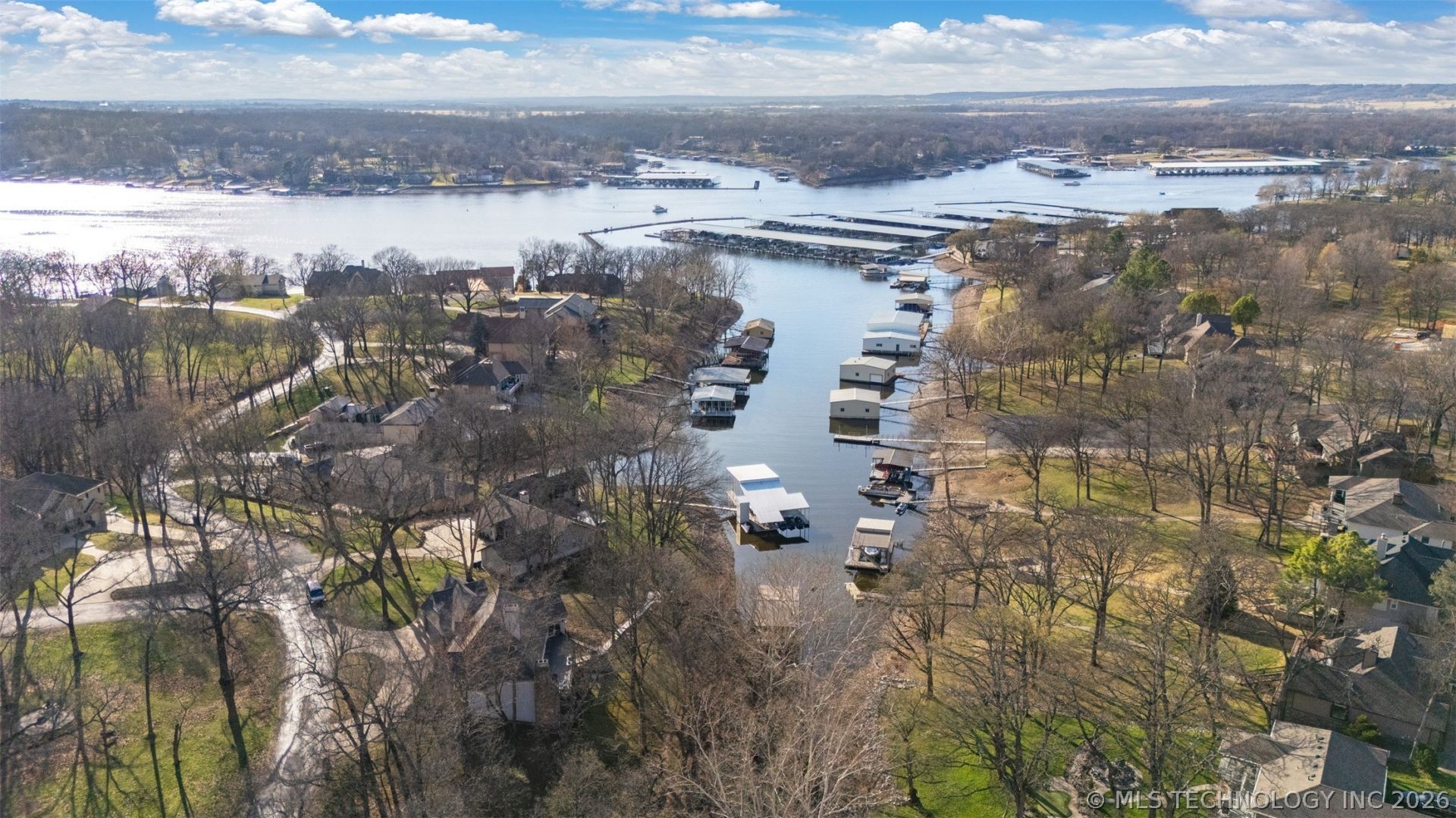 Nestled on a scenic waterfront lot in The Coves at Bird Island at Grand Lake, this beautiful home offers comfort, character, and lake living with your own private dock just steps away. The home's exterior features stone accents, charming dormers, and a welcoming arched entry. Inside, you'll find warm hardwood floors, natural light throughout, and a thoughtfully designed layout for both everyday living and entertaining. The spacious main living area features vaulted ceilings with exposed wood beams and expansive windows that frame peaceful views of the lake. The open-concept design flows seamlessly into the kitchen, where rich wood cabinetry, granite countertops, and a large island create a functional and stylish space for gathering. Enjoy meals in the cozy dining area with oversized windows, or step outside to the covered deck for relaxing, grilling, or simply taking in the tranquil setting. Both levels of the deck feature a cozy stone fireplace. The home offers multiple bedrooms and flexible living areas, including a fun upper-level retreat complete with bathroom and kitchenette. A gentle path leads to your private dock, where you can enjoy boating, fishing, or soaking up the lake lifestyle. Life in The Coves means more than just a beautiful home, it's a lifestyle! With 24/7 manned security, a championship golf course, pool, tennis and pickleball courts, clubhouse, and community dock, you'll have endless opportunities for recreation and relaxation.