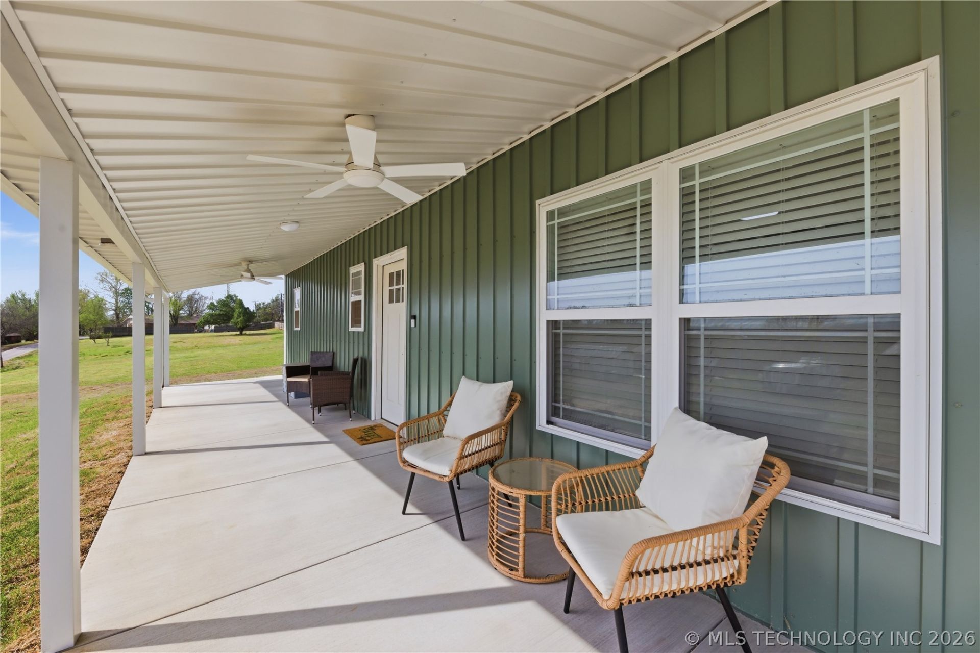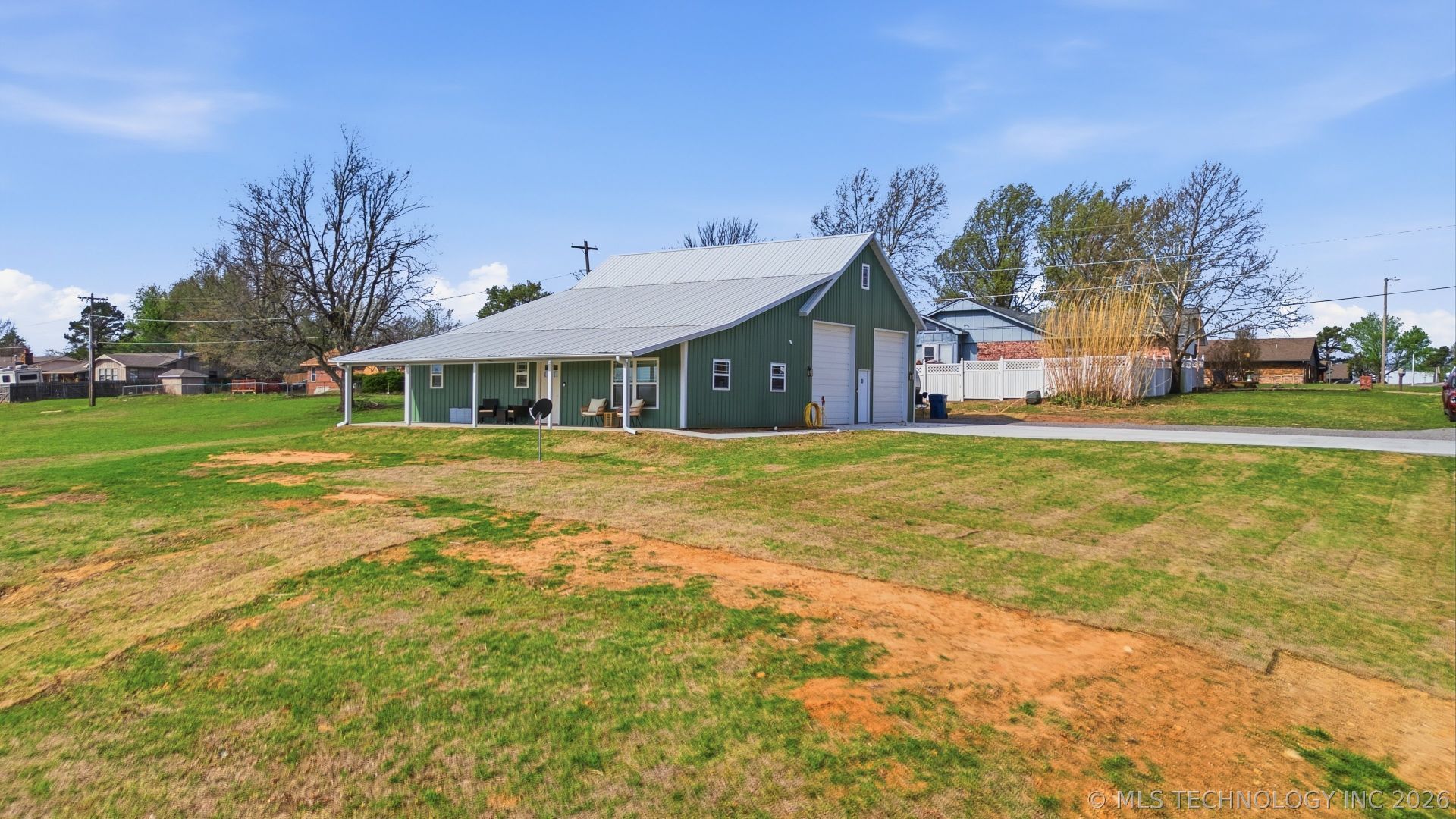 This isn't just a home....it's a lifestyle upgrade. A brand-new 2025 barndominium sits on just under 1 acre on a corner lot, modern, clean, and built for anyone who wants space, function, and freedom. Inside, 900 sq ft (BP) of low-maintenance living features no-step entry, 36-inch interior doors, a 4-foot-wide hallway, and a bright, open layout. Large utility room with sliding barn door encloser. Real wood shaker doors, butcher block countertops, stainless appliances, and a custom 5' x 42" tiled shower with marble countertops make the home stylish, accessible, and practical. The real showstopper? A 30x40 (1,200 sq ft) (BP) CLIMATE CONTROLLED insulated SHOP/GARAGE with two 12-foot overhead doors and an RV hookup, perfect for cars, motorcycles, crafts, home projects, or simply spreading out. Step outside to the full-length covered porch with dual fans, enjoy the corner lot privacy, and benefit from being very close to Hwy 33 the truck route for easy access to get down the road, while still just 35 minutes to Tulsa and 45 to Stillwater. Built smart with spray foam insulation, tankless water heater, whole-house filtration, epoxy concrete floors, and a Bermuda sod yard, this property is as functional as it is impressive. If you want style, space, and freedom, this is it.